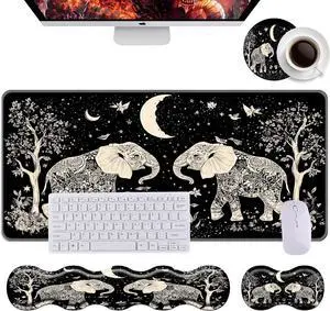 Desk Pad, Large Game Mouse Pad + Small Mouse Pad + Wrist Rest,Ergonomic Mouse Pad,Table Mat with Stitched Edge,Anti-Slip,Memory Foam Desk Mat for Home Office Gaming(23.611.8in),Galaxy Dinosaur