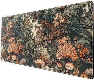 Flower Vintage Desk Pad Aesthetic Desk Mat Flower Mouse Pad Computer Big Mousepad Non-Slip Base Gaming Keyboard Giant Mouse Pad Computer Mat for Laptop Office with Stitched Eges 31.5x11.8 in