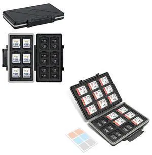 Water-Resistant Memory Card Case + 2 Pack Hand Wrist Strap: Camera Memory Card Holder with 2 Pack Leather Wrist Strap for 12 SD Cards & 12 Micro SD Cards