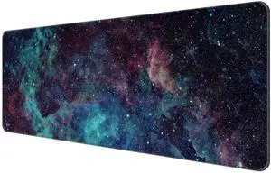Dynippy Thin Extended Gaming Mouse Pad 31.5 * 11.8 * 0.08 inch with Stitched Edges Large , Long XXL Keyboard and Mouse pad Desk Mat for Gaming Office & Home - Galaxy Space