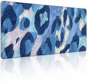 KOBWOPI 35.4 x 15.7 in, XXL Large Mouse Pad for Desk, Extended Keyboard Mouse Mat for Computer Office, Big Mouse pad with Stitched Edges, Gaming Pc-Leopard Print Light Blue and Navy