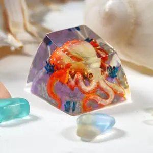 Orange Octopus Artisan Keycap R1 SA Profile Custom Ocean Sea Creatures Keycaps 1U ESC Handmade Gaming Kraken Resin Key Cap Cherry MX Switch Compatible Mechanical Keyboard Octopus Lover Gift