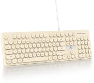 iRoboosta Quiet Keyboard Wired Membrane Keyboard Aesthetic, Full Size 104 Keys Typewriter Key Board with Number Pad, Blue LED Backlit, Round Keycaps, Cute Computer Keyboards (Khaki)