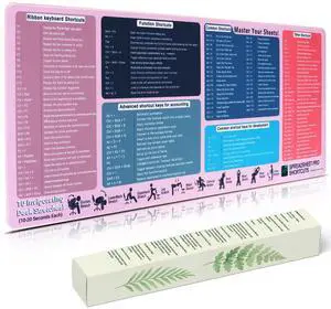Excel Cheat Sheet Mouse Pad | Large Non-Slip Desk Mat with Shortcuts for Office & Home(Blush)