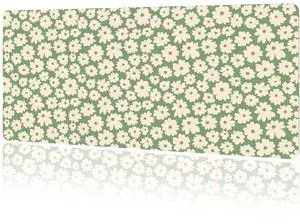 Lauspuck Desk Pad, Extended Gaming Mouse Pad, XXL Large Desk Mat, Rubber Base Mousepad with Stitched Edges for Work, Game, Office, Home -Green Flower
