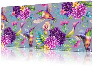 NIYLYNSYN Mouse Pad Large Humming Bird and Flowers Non-Slip Gaming Desk Mat with Stitched Edge Laptop Keyboard Desk Pad for Work Home Gaming (35.4 x 15.7 Inches)