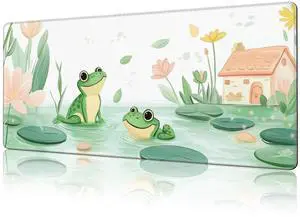 NIYLYNSYN Mouse Pad Large Cute and Whimsical Frogs Non-Slip Gaming Desk Mat with Stitched Edge Laptop Keyboard Desk Pad for Work Home Gaming (35.4 x 15.7 Inches)