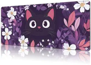 Ujkrvesj Black Cat Mouse Pad XL Desk Large Mat Mousepad Extended Non-Slip Long Keyboard Pads Base Stitched Edge for Home Gaming Office Work 31.5 X 11.8 inch