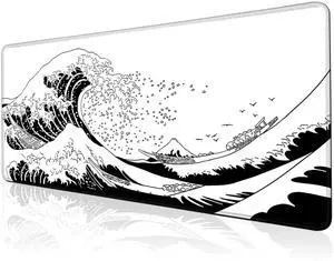 ® Gaming Mouse Pad for Desk,Large Wave Mousepad Laptop,Black White Japanese Anime Mouse Mat,Long XXL Waterproof Keyboard Pads,Big Non-Slip Mousepads for Game Office Home31.5 x 11.9 in