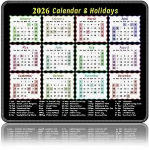 2026 Calendar Mouse Pad9.8 * 11.8in Portable Size|Waterproof, Non-Slip, Smooth to use|with Complete 2026 Holiday Markings|Mouse pad for Work, Study, and Gaming