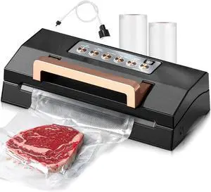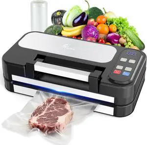 230 Watts Vacuum Sealer for Food, Commercial Vacuum Sealer Machine with Double Heat Seal, Easy Lock Handle, 12 Functions, Bags Storage,Build-in Cutter, 1 Roll and 10 Pre-cut Bags, Progress Display