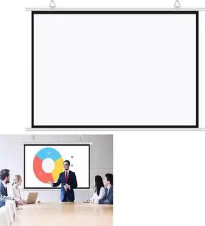 Pull Down Projector Screen White, Portable Movie Screen 16:9 HD 4K Foldable Anti-Crease Projection Screen, Wall & Ceiling Mounted HD Projection Screen Portable Projector Screen,40" , 50" , 60" , 72"(1