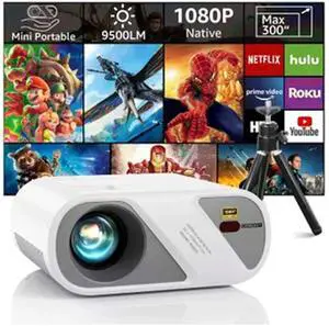1080P Projector with WiFi and Two-Way Bluetooth, Full HD Movie Projector for Outdoor Movies, 300" Display Projector 4k Home Theater, Compatible with iOS/Android/PC/XBox/PS4/TV Stick/HDMI/USB