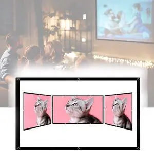 100in Foldable Anti Crease Outdoor Movie Screen, 16:9 Portable Canvas Curtain for Home Theater, Durable and Washable, Supports Front and Rear Projection, Includes Storage Bag