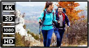 60" 16:9 HD Projector Screen, Washable Anti-Crease Projection Screen for Indoor & Outdoor Use, Portable 4K HD Screen(120in(265x150cm))