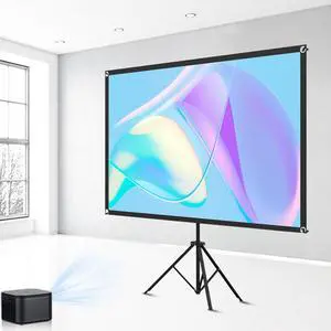 Tripod Projector Screen with Stand 60", 72" 16:9 4K HD Projection Screen Stand Wrinkle-Free Height Adjustable Portable Screen for Projector Indoor Outdoor for Movie, Home Cinema, Gaming(60")