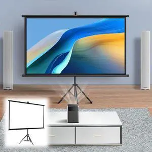 Tripod Projector Screen with Stand 60", 72" 4K Hd Projection Screen Stand Wrinkle-Free Height Adjustable Portable Screen for Projector Indoor & Outdoor for Movie, Home Cinema, Gaming, O,16:9-60