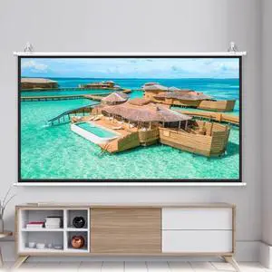 Projector Screen Wrinkle Free Hd Retractable Projector Screen, Portable Projector Movie Screen, Suitable For Home Theater/Cinema Or Presentation Platform, Easy Roll Up, Ultra Short,White Fiberglass4