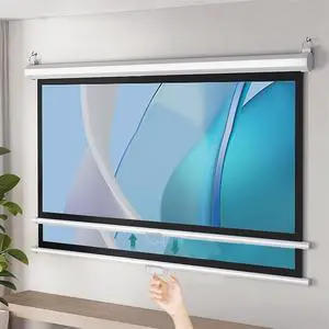 4:3/16:9 Pull Down Manual Projector Screen, Foldable Anti-Crease Portable Projector Movie Screen, Wall Or Ceiling Mountable HD Ratio For Home Theatre, Office, 30" , 40" , 50" , 60" , 72"(16:9,72")