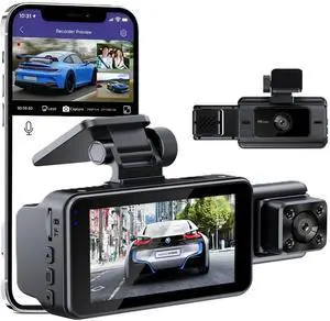 Dash Cam Front and Rear, 2.5K+1080P+1080P 3 Channel Dash Cam with 32GB Card, Wi-Fi Dash Camera for Cars, G-Sensor, Night Vision, 24H Parking, Loop Recording Dashcam, 1.97IPS, Support 256GB