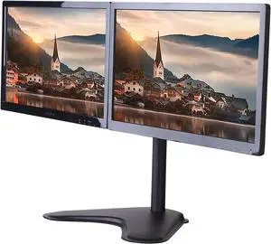 TV Stand Dual Monitor Stand Mount, Freestanding Height Adjustable Two Arm Monitor Mount, for 2 Monitors Fits 17 to 32 Inch Monitor