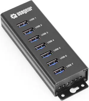 USBGear 7-Port USB 3.0 Mountable Charging and SuperSpeed Data Hub with 5V/4A Power Adapter - USB Type-A to Type-B Cable Included - Up to 900mA per Port Charging - Wall and Surface Mounting