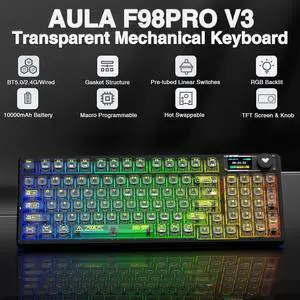 AULA F98 Wireless Mechanical Keyboard Bluetooth Three-mode Wired Transparent Customized Game hot-swap RGB Backlit 2*2000mAh Battery Ash Wood Switch Forest