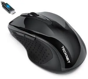 Rechargeable Jiggler Wireless Mouse (BT5.0/3.0 & 2.4G) 4800 DPI Silent USB A & Bluetooth Mouse 6 Buttons, Wide Compatibility - Black