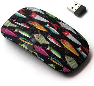 CJCBROES 2.4G Wireless Mouse with Cute Pattern Design for All Laptops and Desktops with Nano Receiver - pop Colorful Fishing Lures
