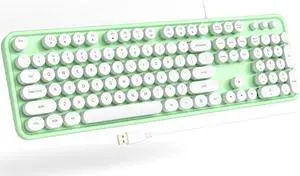 Atelus Computer Keyboard Wired, Plug Play USB Keyboard with Large Number Pad, Caps Indicators, Foldable Stands, Full Size Keyboard for Windows PC Laptop (Green-White)