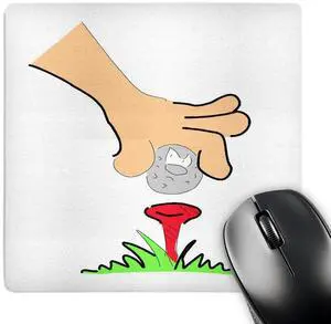 3dRose LLC 8 x 8 x 0.25 Inches Mouse Pad, Funny Face Golf Ball with Hand and Tee (mp_44806_1)