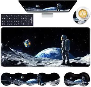 CICPLKSE Keyboard Wrist Rest and Mouse Pad with Wrist Support Set Ergonomic Coaster,Memory Foam,Easy Typing Pain Relief,Large XL Desk Mat 31.5"x 11.8",Astronaut on Moon