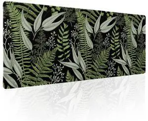 Green Black Plant Leaf Gaming Mouse Pad XL Tropical Fern Botanical Leaves Extended Big Large Desk Mat Non-Slip Rubber Base Stitched Edge Long Keyboard Mousepad for PC Computer Laptop,31.511.8 in
