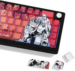 JOLINTAL PBT Material Red Keycaps Japanese Anime Dye Sublimation keycap 131 Key Cherry Profile Shine-Through Side-Engraved Custom Key caps Set for Mechanical Keyboard 61/64/75/84/87/104/108 Layout