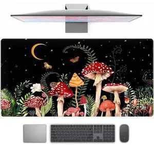 Sxckang Mushroom Anime Desk Mat, Fairy Forest Large Gaming Mouse Pad for Laptop Computer, Tabletop Magic Play Mats Full Desk Mouse Pads, Fantasy Art XXL Playmat Mousepad