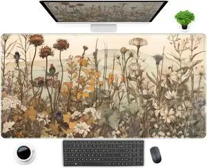 Pastel Wildflower Botanical Floral Desk Mat XXL Large Gaming Mouse Pad, Cute Nature Plant Flower Desk Pad Computer Mat 31.5x15.75 in, Laptop Keyboard and Mouse Mat Desktop Decor for Women