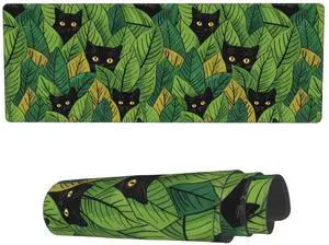 Cute Large Mouse Pad Kawaii Black Cat Green Plant Extended Gaming Mouse Mat XL Anime Big Computer Keyboard Mousepad with Non-Slip Base and Stitched Edge for Home Game Office, 31.5 X 11.8 Inch