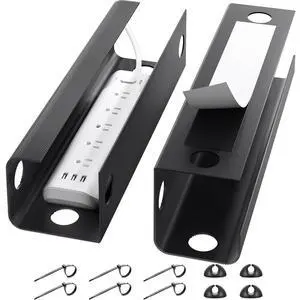 2 Pack Cable Management Under Desk, 31.5 in Under Desk Cable Management Tray,Cord Hider,Cord Organizer, No Screw Wire Management for Office and Home, Black