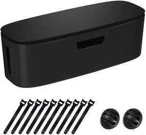 Cable Management Box - Large Cord Organizer Box to Hide Power Strip & Under Desk, TV Computer Wires Cable Organizer Box with Baby Proofs, Desk Cord Organizer for Home/Office - Black