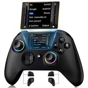 Interactive Screen Wireless Gaming Controller, Compatible with PC/PS4/Switch/Android/iOS, 4 Programmable Buttons, Turbo, 6-axis Gyro, Dual Vibration, RGB Lighting, Share, Screenshot, 1000mAh