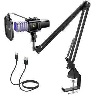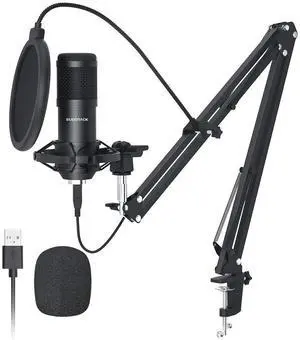 Studio Condenser USB Microphone Computer PC Microphone Kit with Adjustable Boom Arm Stand Shock Mount for Instruments Voice Overs Recording Podcasting YouTube Vocal Gaming Streaming-T669