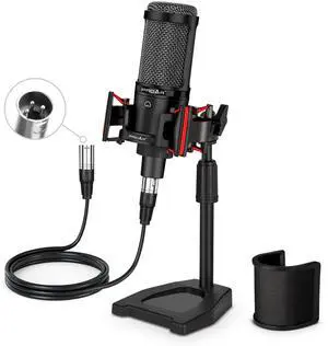 XLR Podcast Microphone Professional Cardioid Condenser Microphone for PC Computer Studio XLR Mic Kit for Recording/Podcasting/Streaming/Voice Over/ASMR/Home Studio/YouTube with Desktop Stand