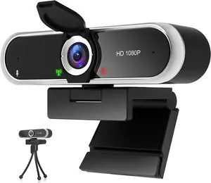 Webcam 1080p, Built-in Microphone/Tripod/Privacy Cover, Plug and Play USB Computer Camera, Wide Angle, Streaming Web Camera for Desktop Computer/PC for Laptop Mac Zoom Conference
