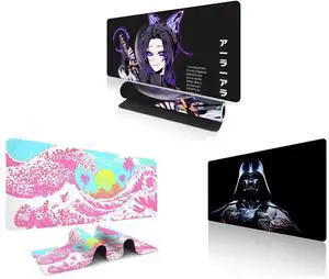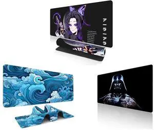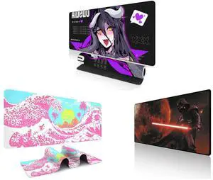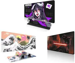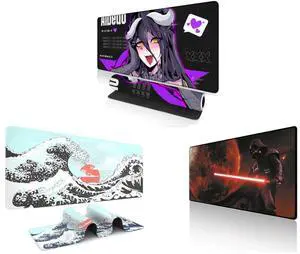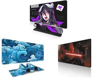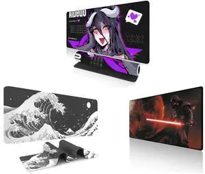 Alpha Fit Anime Gaming Mouse Pad XXL (35.4" x 15.7") - Dark Fantasy Succubus Girl - Large Mouse Pad Extended - Extra Large Gaming Mouse Pads Purple Waifu Style - 02 and Alpha Fit Black & White Great Wave Gaming Mouse Pad XXL (35.4" x 15.7") - Monochrome Ink Wash Japanese Art Desk Mat - Minimalist Setup with Stitched Edges and Alpha Fit Star Wars Gaming Mouse Pad XXL (31.5" x 11.8") - Darth Vader Dark Side Art - Large Mouse Pad Extended - Extra Large Gaming Mouse Pads Sith Lord Desk Mat 31