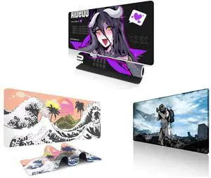 Alpha Fit Anime Gaming Mouse Pad XXL (35.4" x 15.7") - Dark Fantasy Succubus Girl - Large Mouse Pad Extended - Extra Large Gaming Mouse Pads Purple Waifu Style - 02 and Alpha Fit Mint Green Great Wave Gaming Mouse Pad XXL (35.4" x 15.7") - Soft Teal Japanese Art Desk Mat - Fresh Nature Aesthetic Extended Keyboard Mat and Alpha Fit Star Wars Gaming Mouse Pad XXL (31.5" x 11.8") - Darth Vader Dark Side Art - Large Mouse Pad Extended - Extra Large Gaming Mouse Pads Sith Lord Desk Mat 31