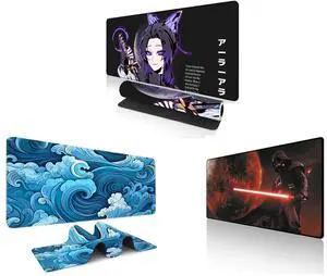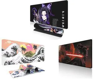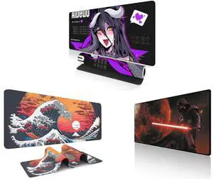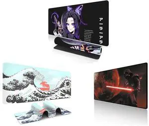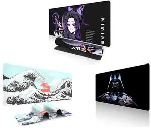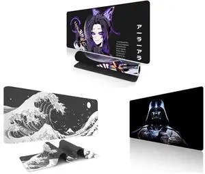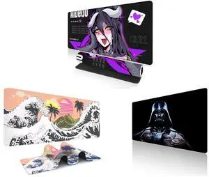 Alpha Fit Anime Gaming Mouse Pad XXL (35.4" x 15.7") - Dark Fantasy Succubus Girl - Large Mouse Pad Extended - Extra Large Gaming Mouse Pads Purple Waifu Style - 02 and Alpha Fit Classic Great Wave off Kanagawa Gaming Mouse Pad XXL (35.4" x 15.7") - Traditional Blue Japanese Art Desk Mat - Non-Slip Rubber Base for Office and Alpha Fit Star Wars Gaming Mouse Pad XXL (31.5" x 11.8") - Darth Vader Dark Side Art - Large Mouse Pad Extended - Extra Large Gaming Mouse Pads Sith Lord Desk Mat 31