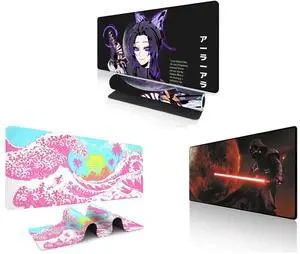Alpha Fit Anime Gaming Mouse Pad XXL (35.4" x 15.7") - Dark Fantasy Succubus Girl - Large Mouse Pad Extended - Extra Large Gaming Mouse Pads Purple Waifu Style - 02 and Alpha Fit Classic Great Wave off Kanagawa Gaming Mouse Pad XXL (35.4" x 15.7") - Traditional Blue Japanese Art Desk Mat - Non-Slip Rubber Base for Office and Alpha Fit Starwar Gaming Mouse Pad XXL (31.5" x 11.8") - Star Wars Themed Large Mouse Pad - Extra Large Gaming Mouse Pads with Non-Slip Rubber Base & Stitched Edges for Sci-Fi Setup