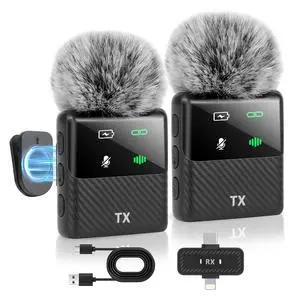 Mini Wireless Lavalier Microphone for iPhone, iPad, Android Phone, Noise Reduction Plug and Play Magnetic Clip on Lapel Mic for Video Recording Podcast Vlogging