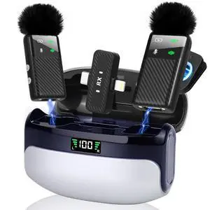 Mini Wireless Lavalier Microphone for iPhone iPad Android Phone, 25H Battery Life with Charging Case, Noise Reduction Magnetic Clip on Lapel Mic for Video Recording Podcast Vlogging