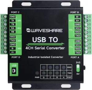 Waveshare Industrial USB to 4-Ch Serial Converter, Original FT4232HL Chip, Supports USB to RS232/485/422/TTL, Multiple Devices Applicable, Multi-OS Compatible
